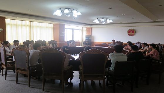 (通讯员 刘翔 摄影 刘翔)为深入了解学生实习情况,进一步加强对学生实习工作的指导,法律硕士教育中心学生党总支潘丰文书记、辅导员李杨老师和实习辅导员刘翔老师于6月16日前往黄冈市人民检察院、人民法院、财政局看望实习的2013级和2014级同学,并与实习单位指导老师、实习同学举行了座谈会。