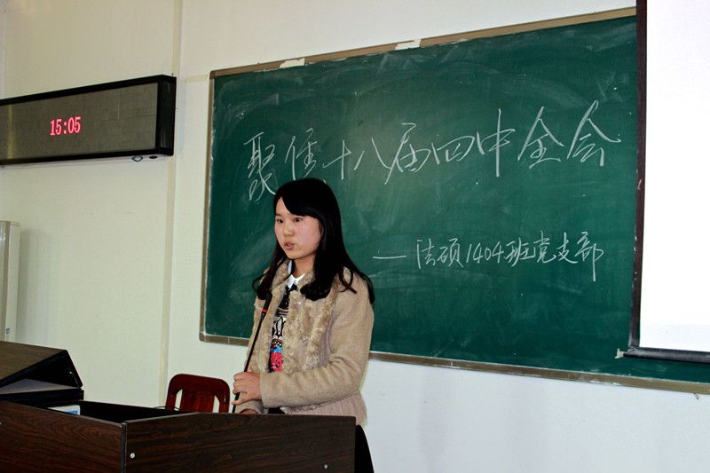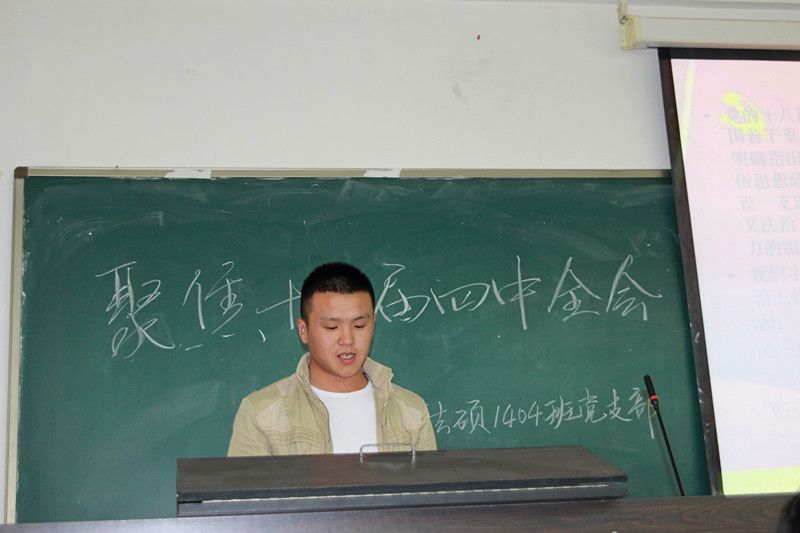 为了让班级党员、预备党员以及有意愿入党的同学充分认识党的十八届四中全会的重大意义,准确把握党的十八届四中全会的精神实质,学习贯彻好十八届四中全会精神,2014级法硕4班党支部于20141119日下午在文添楼210开展“聚焦十八届四中全会”学习研讨会。该会议由组织委员于洪洋全程主持。