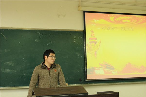 (通讯员 盛力文 摄影 徐紫鹏)决定中国经济社会发展大计的两会于3月初召开,备受瞩目。全国各地掀起学习两会精神的热潮。为了让班级党员、预备党员以及有意愿入党的同学充分认识两会的重大意义,准确把握两会的精神实质,学习贯彻好两会精神,2014级法硕4班党支部于2015年3月19日下午2点在文添楼201开展“聚焦两会”主题活动。
