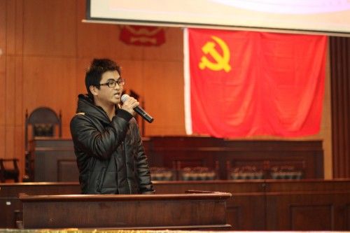 接着,大会进行第二项,法学院党委书记蔡明辉致辞。他对所有的党员同志、入党积极分子提出了三点希望:一、坚定理想信念,牢记历史使命;二、勤奋学习,增强党的先进性;三、投身实践,为党旗增辉。最后,蔡书记特别强调,新党员同志要多多参加各项实践活动,要把在学校所学的知识和党的伟大事业结合起来。