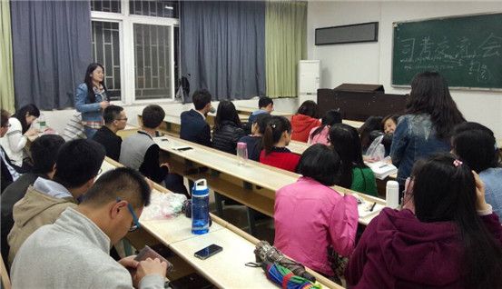 (通讯员韩旭摄影王阿慧)司考备战,携手启航。为了让广大同学积累更多的司法考试经验,掌握更加有效的学习方法。42日晚7时整,法硕1403班司法考试经验交流会在文添楼107教室举行。在2014年司法考试中取得优异成绩的杨新城、刘雯婷、陈江刚、龚雪4位同学作为嘉宾出席了交流会,法硕1403班全体同学参加了本次活动。