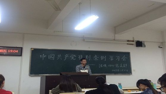 (通讯员何晶摄影王树鹏)近日,中共中央印发了《中国共产党廉洁自律准则》(以下简称《准则》)和《中国共产党纪律处分条例》(以下简称《条例》),这两项重要文件是党在新时期新形势下针对党员同志提出的新要求。特别是党的十八大以来,随着全面从严治党实践的不断深化,全面、透彻领会和践行文件内容显得尤为重要。故此,根据法律硕士教育中心学生党总支的安排,法硕1501班党支部于11月6日晚七点在文添楼101以茶话会的形式开展了党的重要文件的学习交流活动,到会成员包括中国共产党正式党员、预备党员和志愿加入中国共产党的积极分子。