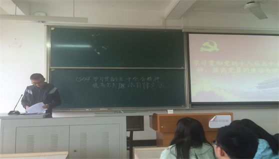 随后同学们就学习内容展开了激烈的讨论,纷纷踊跃发言。学生代表赵春晖谈到,《准则》树立一条道德高线,即修订后的准则成为党执政以来第一部坚持正面倡导、面向全体党员的党内廉洁自律规范;学生代表方婷婷表达了自己对《条例》的看法,她认为党内法规不是“橡皮泥”“稻草人”,要严格按照准则和条例办事,把党规党纪刻印在全体党员心上。