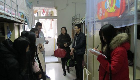 (通讯员 赵芮芮 摄影 吴应松 吴周求)为了营造安全健康的学习与生活环境,提高同学们的安全意识,树立正确的防火观念,切实做好学生宿舍管理工作,2015年11月24日中午12点半,在法律硕士教育中心潘丰文书记、李杨老师和刘翔老师的带领下,各班班干部组成的检查小组开展了宿舍消防安全和卫生检查活动。