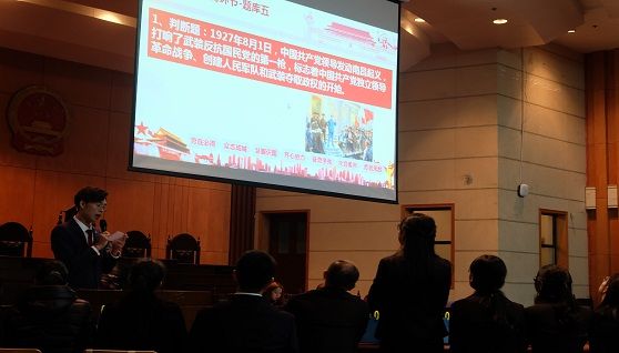 (通讯员 陈吉 摄影 乔佳龙)为了深入贯彻落实党的十九大精神,进一步学习党的历史与文化,法硕中心学生党总支于2017年11月28日晚6:30在文泰楼模拟法庭一举办了第四届党史党情知识竞赛。法硕中心学生党总支书记潘丰文、辅导员李杨、刘翔出席了本次活动,2016级、2017级共7支队伍参加了本次比赛。