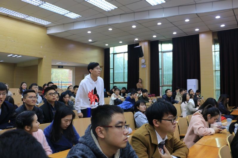 第二场讲座于2018年11月22日晚7点在文添楼501教室举行。讲座伊始,余金聪老师以一个“摸鼻子摸耳朵”小游戏引入主题,向在坐同学发问“我们面对的压力有哪些”。同学们表示,在校的压力主要来自于求职、学业、情感等方面。对此,余老师分别从压力的概念、压力产生的原因、压力的影响、压力的应对四个方面予以解读。余金聪老师的讲课非常生动,语言幽默风趣,穿插在讲座过程中的小测试、小短剧、提问等互动使整场讲座的气氛变得很热烈,现场的同学们反馈积极。最后,余金聪老师特别提醒大家注意:一定要不断尝试,不设限,不比较,不放弃,希望永远都在!