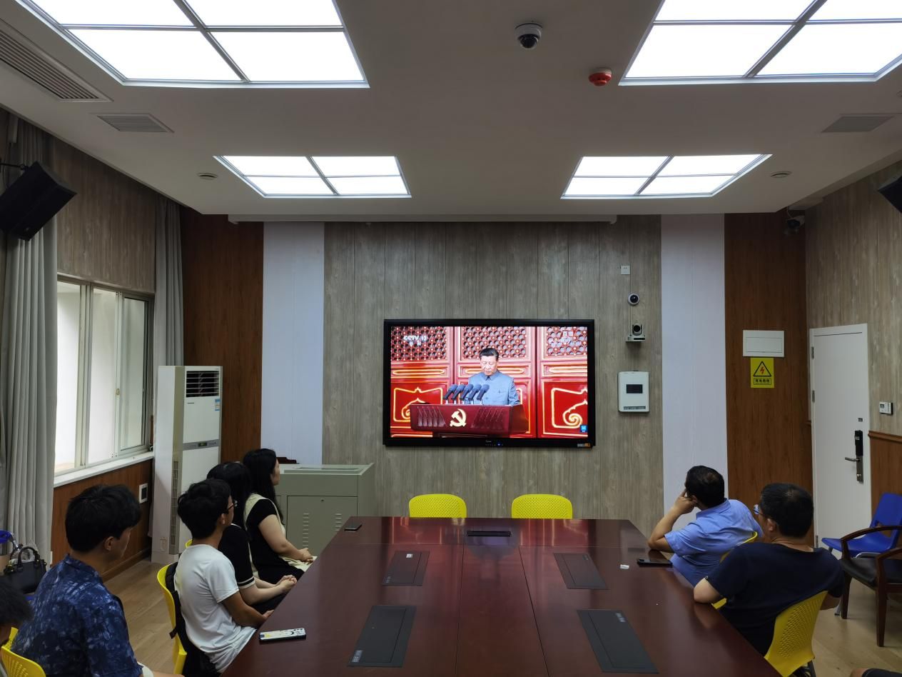 (通讯员 马禹 摄影 郭兵林)2021年7月1日上午8时,庆祝中国共产党成立100周年大会在首都北京天安门广场隆重举行。法律硕士教育中心组织部分师生代表在文治楼法学实验中心302室观看整场大会。