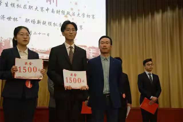 经过激烈角逐,周逸博同学荣获本次大赛一等奖,并将代表学校参加第六届“勇往职前”湖北省大学生模拟求职大赛复赛。马佩瑶同学荣获二等奖。