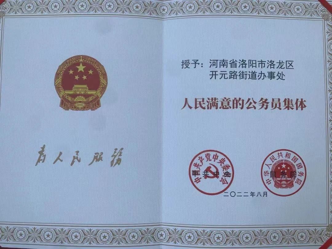 2022年8月30日,全国“人民满意的公务员”和“人民满意的公务员集体”表彰大会在北京举行。洛龙区开元路街道办事处获评全国“人民满意的公务员集体”,为洛阳市唯一获得此殊荣的集体,我校硕士研究生刘洋赴京领取荣誉。