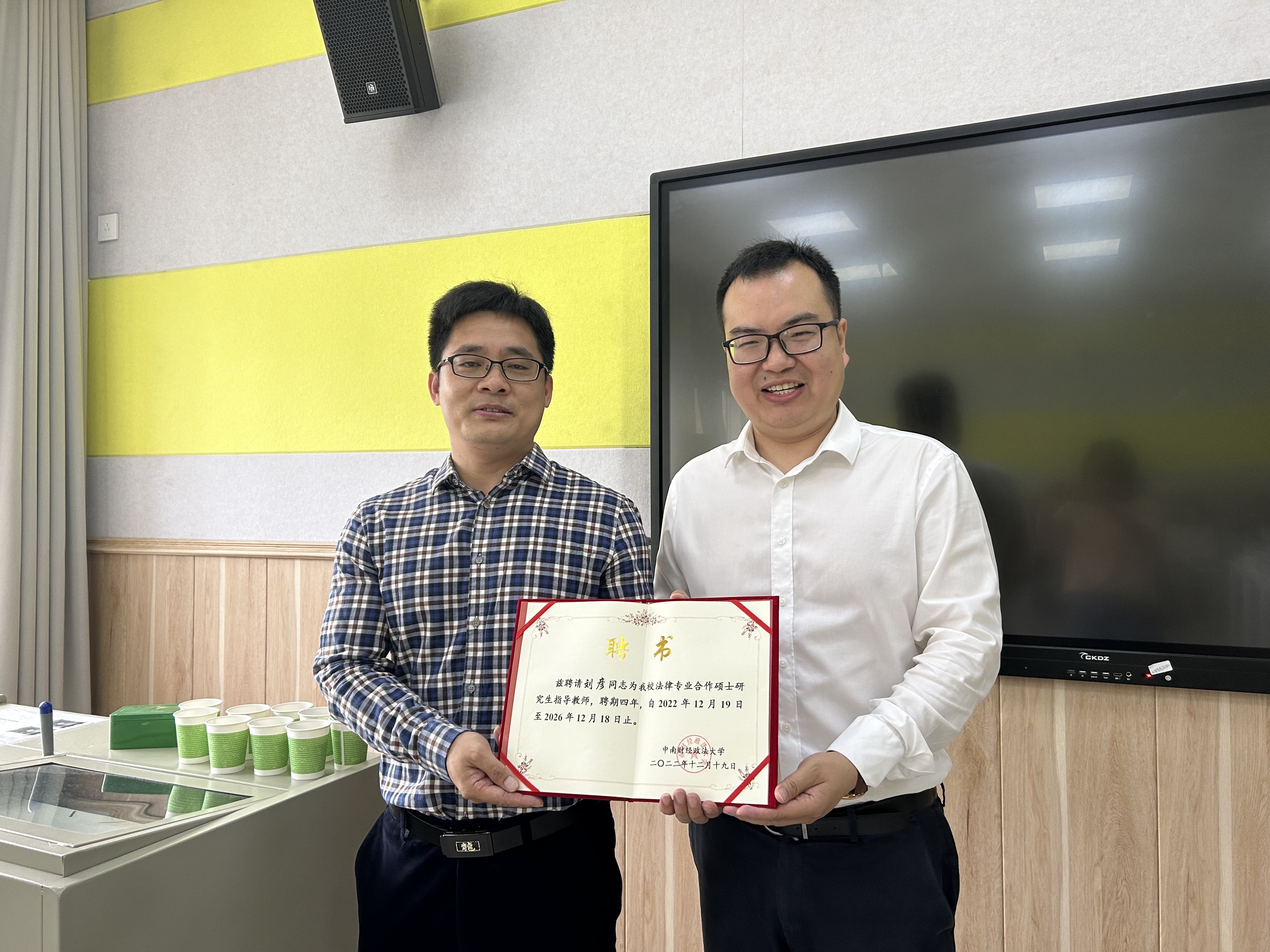 (通讯员 刘军 摄影 杨捷)2023年5月17日,法律硕士教育中心副主任王广波为上海央法律师事务所执行主任刘彦律师颁发了法律硕士研究生合作指导教师的聘书。此前,法律硕士教育中心与上海央法律师事务所签订实践创新教育基地共建协议,以期发挥院校智力资源和律师事务律所的优势,做到资源共享,优势互补,共同发展,助力法治人才培养。该所俞艺、熊少虞两位律师也与刘彦律师一同被聘为我校法律硕士研究生合作指导教师。