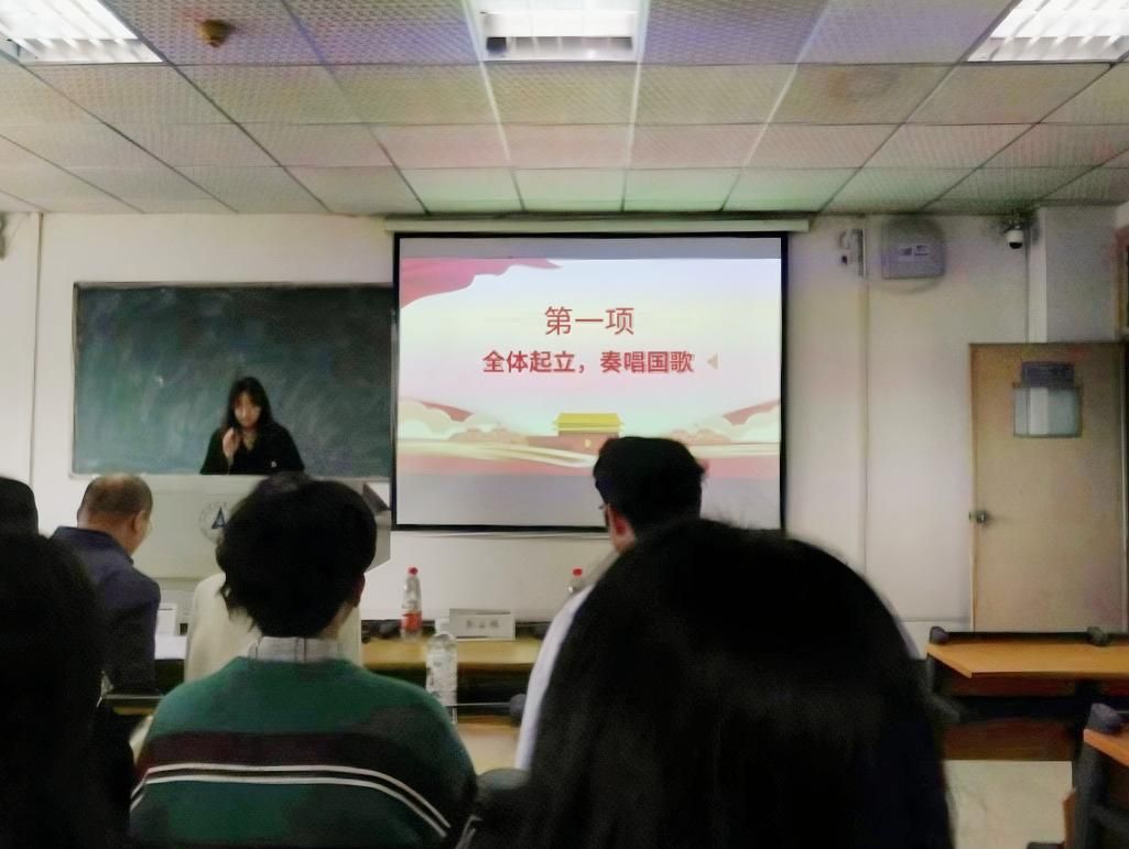 仪式第一项,全体起立,奏唱国歌。