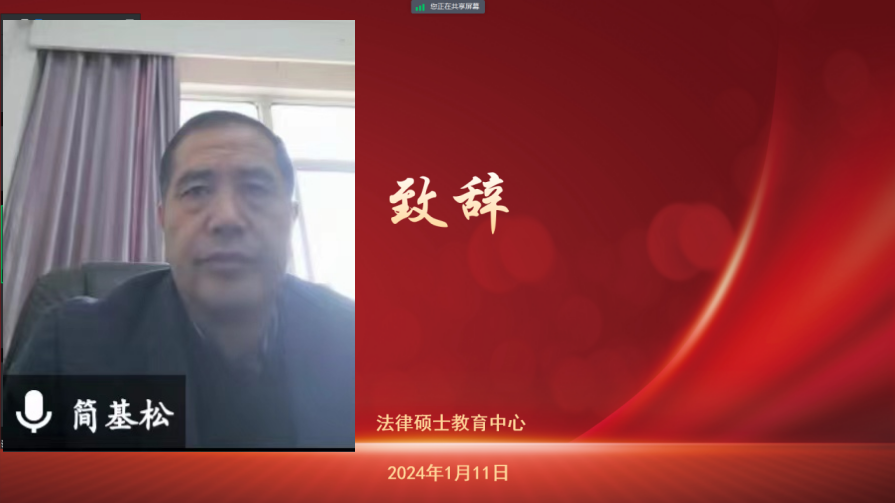简基松代表法律硕士教育中心和全体师生感谢工程建设法律与实务方向法律硕士合作导师对法律硕士人才培养工作的支持。他表示,法律硕士教育中心能够全国首创开设法律硕士专业学位(工程建设)研究生培养项目,即四门方向课程由学校和上海建纬(武汉)律师事务所、中铁大桥局集团有限公司、中冶南方工程技术有限公司、武汉城市建设集团、中冶南方城市建设有限公司、中国能源建设集团有限公司等联合培养单位组成授课团队共16位专家全程参与授课,离不开在座合作导师的配合。同时,他讲述了“合作导师回校领航计划”活动的初衷和目的,希望切实落实“双导师制”培养模式,加强融通培养,实现理论教学与实践教学深度融合,帮助同学们更好的规划实习和就业,旨在将法律硕士培养成领航时代、领航未来的法律人。