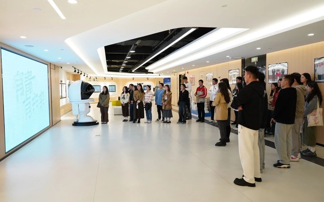 抵达园区后,法律硕士教育中心师生党员们在青创园工作人员的带领下参观青展会展厅。党员们通过视频短片了解到湖北青创园的建设背景、发展历程以及未来规划整体概况实地参观创新创业的最新成果,体验VRAR、机器人等新技术的独特魅力。