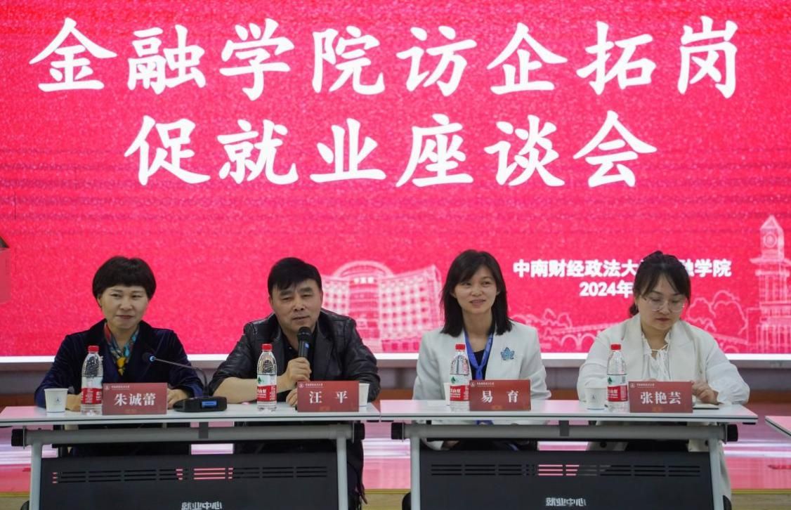 校就业指导服务中心主任温习、副主任张艳芸,金融学院党委书记汪平、副书记朱诚蕾,法学院党委副书记、法律硕士教育中心党总支书记易育,武汉校友会副会长杨华,武汉校友会副秘书长、金融分会执行会长兼秘书长袁静梅及法律硕士教育中心和金融学院专兼职辅导员,以及各用人单位代表出席访企拓岗促就业座谈会,金融学院党委副书记朱诚蕾主持本次会议。