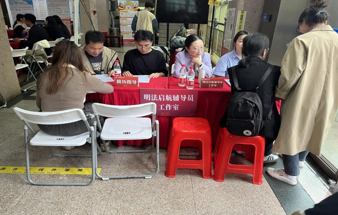 法律硕士教育中心“明法启航”辅导员工作室在招聘会上设置了“简历指导+就业咨询”的一站式就业服务窗口,帮助学生提高求职成功率,为学生高质量就业保驾护航。