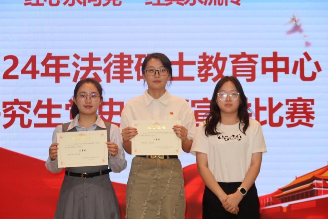 (学生通讯员 段玉萍 潘思琦)为深入学习贯彻习近平新时代中国特色社会主义思想,全面贯彻落实党的二十大和二十届三中全会精神,9月29日下午,法律硕士教育中心在大学生素质中心路演厅举办了2024年研究生党史故事宣讲演讲比赛,展现研究生学子“爱国、励志、求真、力行”的青春本色。本次宣讲比赛邀请了法律硕士教育中心辅导员马晨娇、周诗琪,学生代表李奕麟、韩青蕾、瞿晨、高瑾担任评委。
