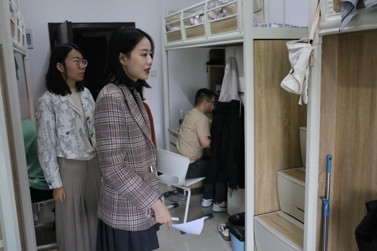 (通讯员 余安琪 学生通讯员 丁国记 陈庆瑶 李颖涵)宿舍不仅是同学们学习生活的栖息地,更是大家共同成长的温馨家园。为进一步加强学生宿舍管理,营造安全整洁、文明卫生的学习生活环境,11月5日,法律硕士教育中心研究生工作办公室副主任余安琪、辅导员马晨娇和周诗琪对学生宿舍开展走访工作。