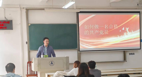 张申鹏老师以“如何做一名合格的共产党员”为题,讲述了疫情期间党员们奋勇争先、共克时艰的感人事例,告诫大家要树立正确的入党动机,把人生理想融入党和人民事业之中,成为一名有党性、有奉献精神的共产党员。