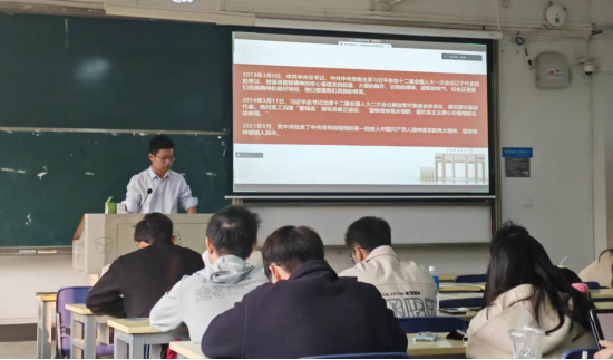 余安琪老师以“铸就社会主义文化新辉煌——学习贯彻党的二十大精神”为题,围绕党的二十大精神展开论述,敦促同学们要学好学深、悟透悟实党的二十大精神,并以社会主义文化为切入点,带领同学们观看了中华文明专题视频,增强了同学们的文化自信。