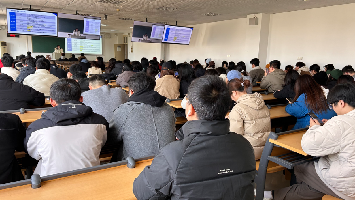 首先,周老师聚焦强国建设的时代命题,从宏观层面剖析青年一代面临的挑战与机遇,探讨其角色与使命。周老师向同学们提出两点倡议:一是读懂国家战略,将个人理想融入国家发展,立足“两个大局”,心怀“国之大者”,即便在平凡岗位上也能干出不平凡的业绩;二是保持独立思考,坚持“长期主义”,在纷繁复杂的网络世界保持情绪稳定、头脑清醒,建立自己的“信息食谱”,不做别人思想的跑马场。随后,周老师强调研究生综合素质培养应与就业求职相贯通,讲解如何从思想政治、学术素养、实习实践、学生工作四个方面丰富研究生生涯与基础简历,锤炼本领。